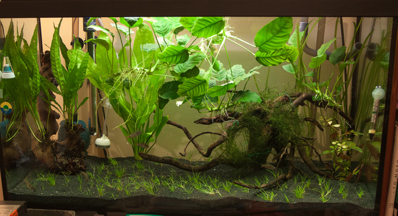 Παραθέτω μερικές φωτό αν και το στήσιμο θέλει ακόμα δουλειά. Στην μέση επιπλέουν ακόμα μερικές anubias που δεν ξέρω τι να τις κάνω. |