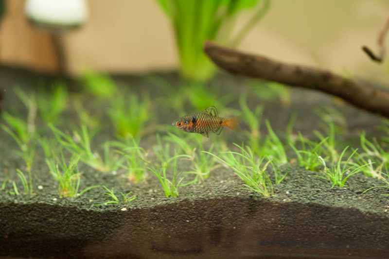 Μετά από αρκετό καιρό (κυρίως περιμένοντας τη ρίζα να βουλιάξει) επιτέλους το ενυδρείο ξαναστήθηκε και πλέον έχουν μπει και τα ψαράκια. Δυστυχώς αν και ζήτησα 6 θηλυκά, 4 αρσενικά, τελικά κατέληξα με την αντίθετη αναλογία (6 αρ. 4 θηλ.). Είναι αλήθεια ότι στο μαγαζί, με το που έβγαλε το πρώτο, έχασαν όλα το χρώμα τους και ήταν αδύνατο να τα ξεχωρίσεις. Στο σπίτι μετά από 24 ώρες είχαν ξαναπάρει τα κανονικά τους χρώματα και πλέον ξεχωρίζουν ξεκάθαρα.