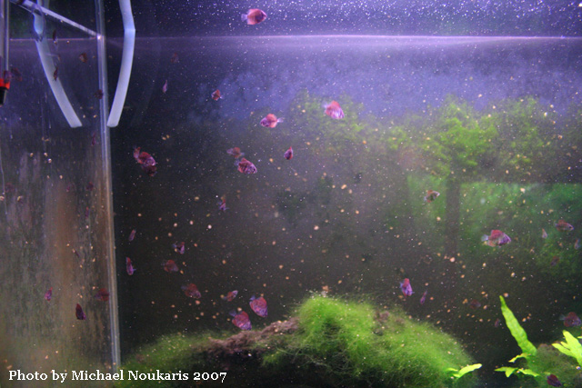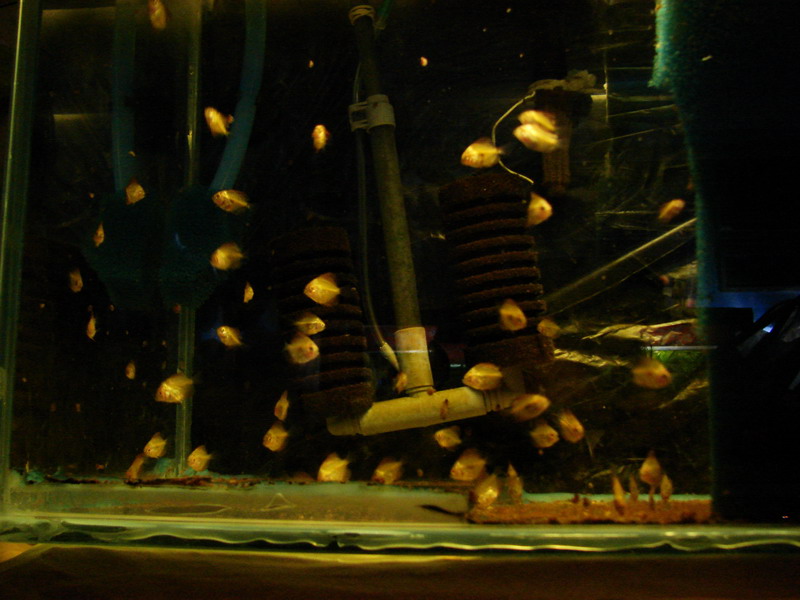 Μολις τελειωσουμε και ειμαστε σιγουροι για τη σωστη εφαρμογη της μεθοδου αναβουμε τα φωτα και επανερχομαστε στη ρουτινα που εχουμε περιγραψει ως τωρα.......Τα αποτελεσματα της μεθοδου αυτης ειναι σιγουρα!!!! Καλο θα ειναι να εχουμε το νου μας μηπως και ο σωληνας δεν εφαπτεται καλα στον πυθμενα του ενυδρειου και εχουμε διαφυγη του μπλε του μεθυλενιου. Δεν πειραζει ανα 6 ωρες προσθετουμε και αλλο διαλυμα μεσα στο σωληνα και κραταμε μια σημειωση να αυξησουμε το βαρος της σωληνας ωστε στην επομενη γεννα να μην εχω το ιδιο προβλημα.......