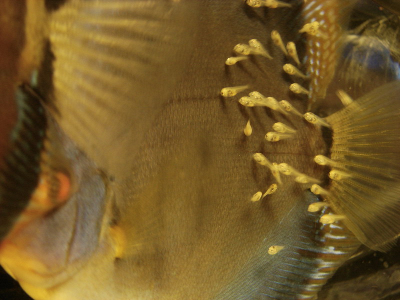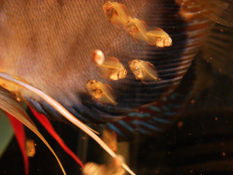 Οταν τελειωσει επιτυχως η παραπανω διαδικασια το ζευγαρι καθεται κοντα στα αυγα του και τα αεριζει με τα πτερυγια και το στομα του...... Αυτο το κανει ωστε να υπαρχει συνεχης κυκλοφορια νερου γυρω απο τα αυγα και να αποτρεψει τη δημιουργια fungus (ασπρη μουχλα) ...... Καλο θα ηταν να καλυψουμε την οθονη εξωτερικα με ενα πανι ή χαρτονι ωστε το ζευγαρι να μην εκνευριζεται απο εξωτερικα ερεθισματα και κινησεις.... Οι δισκοι γενικα ειναι εκπληκτικοι γονεις και προστατευουν μανιασμενα τα μικρα τους, δυστυχως ομως αυτη η υπερπροστασια μπορει να τους οδηγησει να φανε τα αυγα τους αν διαισθανθουν αμεσο κινδυνο για αυτα......... ΣΗΜΑΝΤΙΚΟ
