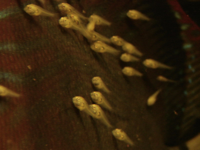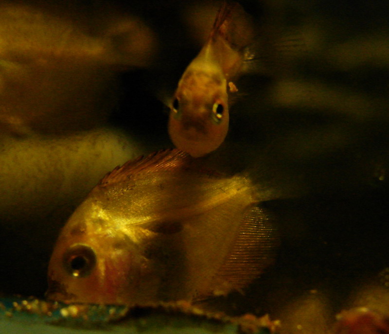 και μια ανανεωση με φωτογραφιες φρεσκες..... Προσεξτε τιη λεπτομερεια στα μικρα της πρωτης μερας....... Φαινεται καθαρο το αυγο που δεν εχει αποκολληθει ακομα απο το ψαρακι και που θα προσφερει την απαραιτητη τροφη για τις 3 πρωτες μερες της ζωης του.......