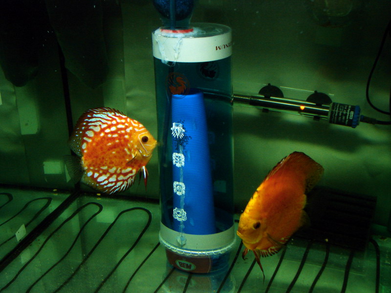 Εχω σιγουρο ζευγαρι και γεννηστρα ετοιμη να το δεχτει......Το φιλτρο μου ειναι καλα στρωμενο , τα παντα δουλευουν στην εντελεια και ειμαι αποφασισμενος!!!!!! και φυσικα οπλισμενος με υπομονη και επιμονη........ ΠΑΡΑΜΕΤΡΟΙ ΝΕΡΟΥΑν μια παραμετρος του νερου ειναι σημαντικη για την επιτυχη αναπαραγωγη των δισκων τοτε αυτη σιγουρα ειναι η σκληροτητα ..... Οσο πιο χαμηλη σκληροτητα εχει το νερο τοσο πιο ευκολα το σπερμα διαπερνα το αυγο και επιτυγχανουμε υψηλοτερα ποσοστα γονιμοποιησης...... Η προτεινομενη σκληροτητα ειναι κοντα στο 2 αλλα και μεχρι 6 βαθμους τα ποσοστα ειναι υψηλα οποτε μην αγχωνεστε...... Οσο αφορα το Ph οι γνωμες διίστανται με μια ταση να μην θεωρείται σημαντικος παραγοντας παντως αυτο δεν αναιρει τον γενικο κανονα οτι οι δισκοι απαιτουν οξινο νερο (Ph 6-6, Θεωρω περιττο να πω οτι το νερο μας θα πρεπει να πεντακαθαρο οσο αφορα αμμωνιες , νιτρικα και νιτρωδη αφου τα μικρα μας ειναι πολυ ευαισθητα ........ Η θερμοκρασια τωρα ειναι ενας σημαντικος παραγοντας που μπορει να παιξει ρολο και στην εναρξη της αναπαραγωγικης διαδικασιας....... Πολλοι εκτροφεις υποστηριζουν οτι καθημερινες αλλαγες νερου 20-25% με κρυο νερο ( 24-25) μπορουν να εκκινησουν την αναπαραγωγη ενος ανενεργου ζευγαριου (αφου θεωρουν πως προσομοιωνουν την εποχη των βροχων!!!!) Οι αλλαγες αυτες πρεπει να συνοδευονται και απο επαρκες ταισμα με ζωντανες τροφες και μοσχαροκαρδια ωστε να ξυπνησουμε το αναπαραγωγικο ενστικτο του ψαριου...... Γενικα ομως η θερμοκρασια στη γεννηστρα θα πρεπει να διατηρείται στους 28-30 βαθμους...... ΑΠΟΛΥΜΑΝΣΗ ΤΟΥ ΖΕΥΓΑΡΙΟΥΠολλοι εκτροφεις του εξωτερικου (κυριως Ασιατες) υπολβαλλουν το ζευγαρι σε ενα ειδος απολυμανσης πριν αρχισουν την αναπαραγωγη...... Η διαδικασια αυτη περιλαμβανει την προληπτικη θεραπεια πρωτοζωων , σκουληκιων , ιων κλπ με τη χρηση πολλων χημικων ουσιων και αντιβιωτικων ωστε τοσο το ενυδρειο οσο και οι γονεις να ειναι απαλλαγμενοι απο οτιδηποτε (σχεδον) θα μπορουσε να βλαψει τα μικρα......Εγω αυτη τη μεθοδο τη διαβασα (cleaning of a breeding pair by Andrew Soh) αλλα δεν θα την εκανα με τιποτα στα ψαρια μου...... Μου θυμισε χημιοθεραπεια καρκινοπαθους και τα ψαρακια μου τα λυπαμαι ...... ΓΕΝΝΕΣΙΣ ΜΕΡΑ 1ηΜε ανοικτο το στομα παρακολουθουμε το ζευγαρι μας να γενναει τα αυγουλακια του πανω στον κωνο...... Η μαμα αφηνει σειρες αυγων και ο υπερηφανος πατερας κανει περασματα απο πανω τους γονιμοποιωντας τα με το σπερμα του......Η διαδικασια αυτη μπορει να κρατησει και παραπανω απο μια ολοκληρη ωρα...... Καλο ειναι κατα τη διαρκεια της να κρατηθουμε μακρια απο το ενυδρειο (δυσκολο το ξερω) και να περιορισουμε ολες τις κινησεις γυρω απο αυτο ωστε να αφησουμε το ζευγος ηρεμο να επιτελεσει το καθηκον του...... ΠΡΟΣΟΧΗ , οπως ειπαμε και παραπανω πρεπει να δωσουμε στην σκληροτητα του νερου αλλα και στη χαμηλη κυκλοφορια του νερου κοντα στον κωνο αναπαραγωγης ωστε το σπερμα να γονιμοποιησει το μεγαλυτερο ποσοστο των αυγων........ Αυτη ειναι η ιδανικη διαδικασια, δυστυχως διαφορες περιπλοκες μπορει να παρουσιαστουν και να δυσκολεψουν τα πραγματα..... Εχουν παρατηρηθει οι παρακατω......