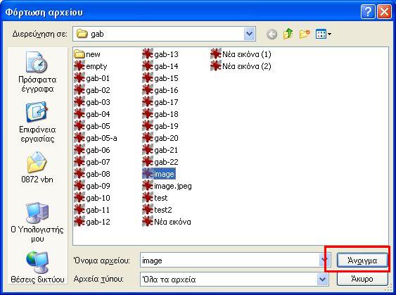 Πατώντας το κουμπί "Αναζήτηση" θα μας εμφανισθεί ένα παράθυρο για να επιλέξουμε φωτογραφία απο τον σκληρό μας δίσκο