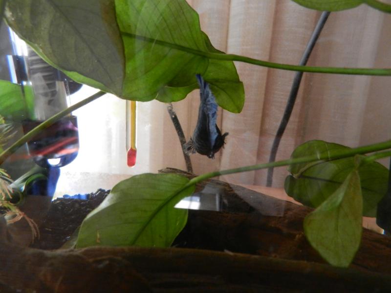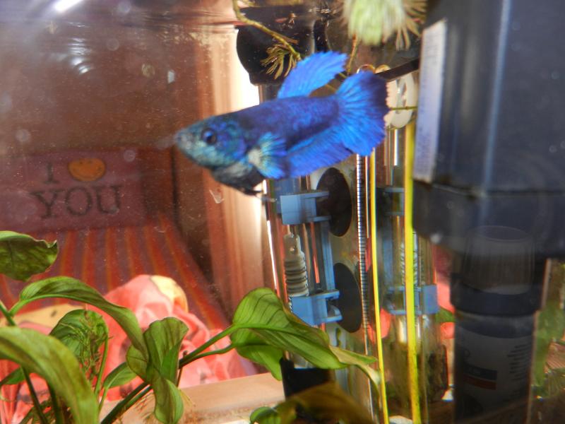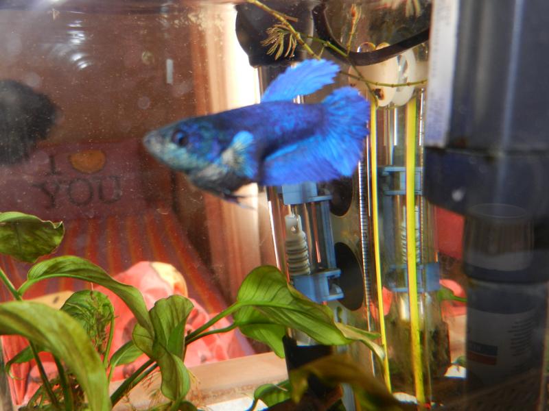- Ρουτίνες (Τάϊσμα, προετοιμασία νερού αλλαγής, αλλαγές νερού κλπ): Αλλαγή 30% κάθε βδομάδα. Δίαιτα. Τάισμα 2 φορές την ημέρα με attison betta pro (4-5 μπιλάκια), ή bloodworms (3-4 σκουλίκια). Μία μέρα την βδομάδα τίποτα (Σάββατο) και κάθε Κυριακή μόνο αρακά...