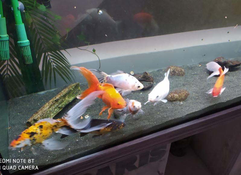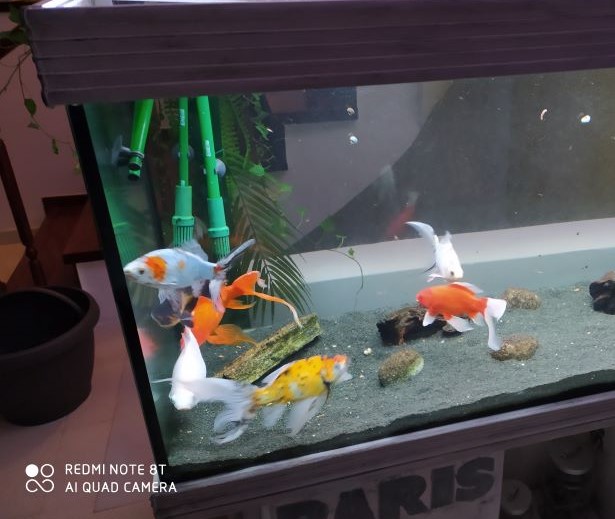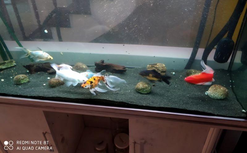 Ποικιλιες χρυσοψαρων: 1shubukin, 1 commet, 4 common, 1 butterfly koi (προσωρινός κάτοικος)
