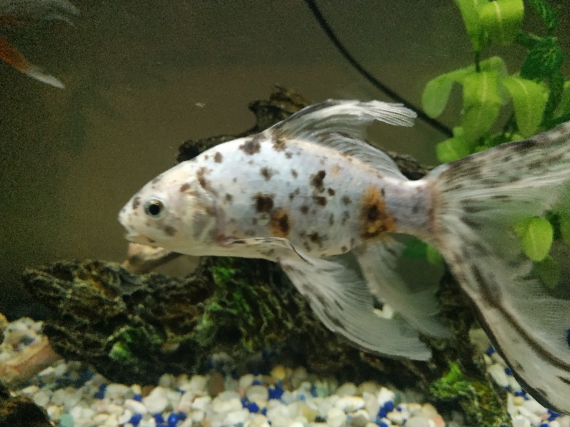 Ερώτηση 3: το δεύτερο χρυσόψαρο είναι λευκό με καφέ και πορτοκάλι κηλίδες στο σώμα και καφέ ρίγες στην ουρά. Είναι τέτοιο το είδος ή είναι καμιά αρρώστια;