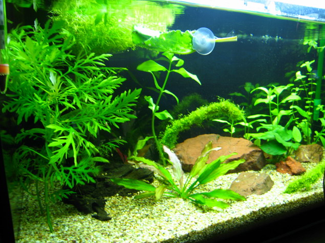 Εχει προοπτικές...Θα σου έλεγα να προσθέσεις και άλλα εύκολα φυτάκια για ομορφιά και για τα ψαράκια. Τα οτοκυκλάκια τί τρώνε??