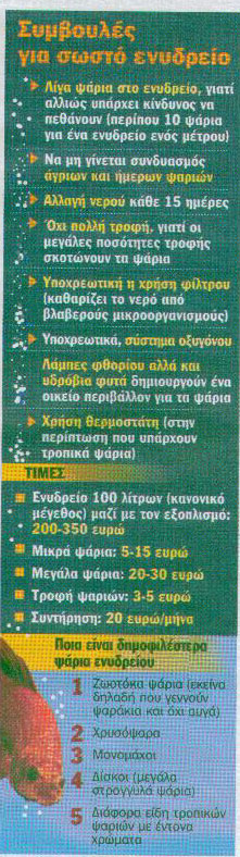 Στην ηλεκτρονική μορφή την εικόνα που λεει δίνει Συμβουλές την επιμελήθηκε κανείς απο τον Σύλογο ή είναι της εφημερίδας? Δώσαμε εμείς συμβουλή για αλλαγή νερού κάθε 15 μέρες? Δεν έχω διαβάσει ακόμη την εφημερίδα καθότι είμαι ακόμη στο γραφείο και δεν έχω προλάβει.