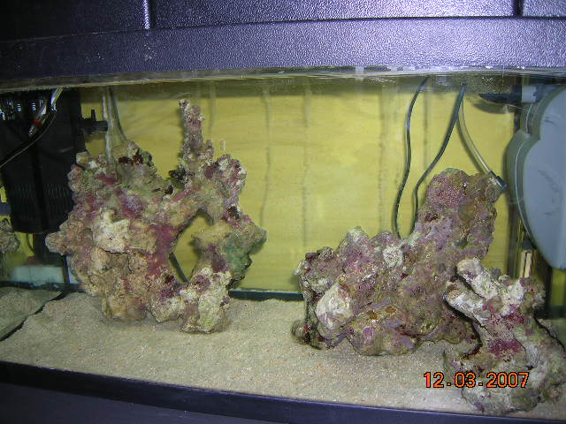 Ή αν το Budget ειναι περιορισμενο , βαλε λιγη ακομα ψοφια αμμο (αραγωνιτη) + 5 κιλα Live rock οσο καλυτερης ποιοτητας μπορεις να βρεις.Ετσι , θα μπορεσεις να φτιαξεις ενα πιο φυσικο ντεκορ.