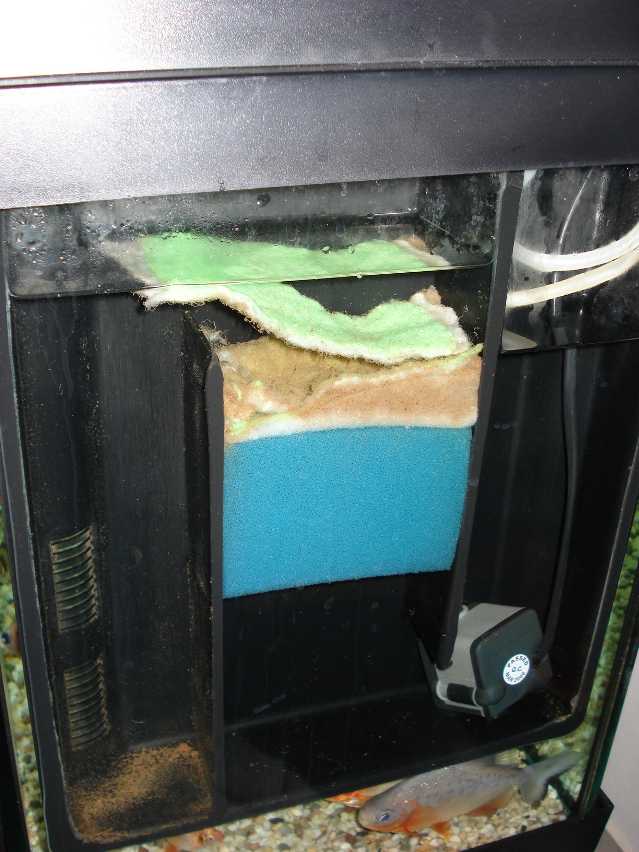 Το φιλρτο του ενυδριου μου αποτελειται απο ενα πλαστικο κουτι (οσο το πλατος του ενυδρειου), ενα μπλε σφουγγαρι, και κατι σαν βαμβακι το οποιο επειδη εγινε εντελος καφε το πεταξα.
