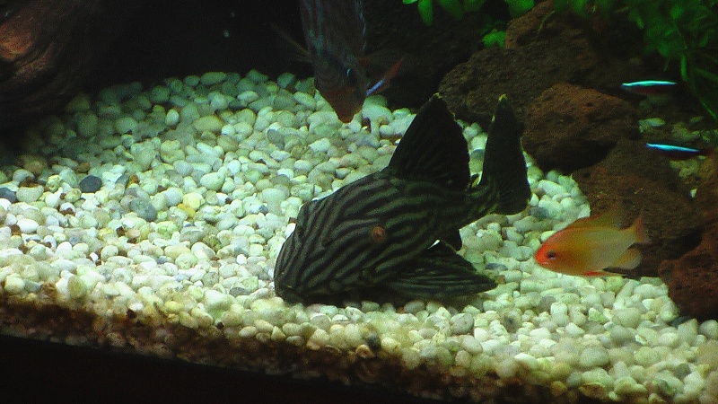 Έχεις δίκιο όσον αφορά τη σχέση ιχθυοφόρτισης και μεγέθους , προς το παρόν το συγκεκριμένο φίλτρο και θρησκευτική τήρηση της ρουτίνας θα κάνουν τη ζωή όσο το δυνατόν ευχάριστη για τους φιλοξενούμενούς μου. Το χειμώνα το περιβάλλον τους αλλάζει καθώς μπαίνει σε λειτουργία project 700 lt + με όλα τα comforts , με ίδιο σετάρισμα , με τη μόνη διαφορά ότι το τοπίο θα εναλλάσεται..... Το μέγεθος του panaque nigrolineatus δηλαδή του πλεκάκου μου είναι περίπου 13/15 πόντοι. Προς Kostas G. Ο πλεκάκος μου έχει και ρίγες και βούλες απο κάτω , δεν ξέρω τι ακριβώς είναι , είναι τρομερός τύπος και όταν γίνει η μετακόμιση θα αποκτηθεί και ταίρι (εαν καταλάβω το φύλο) |