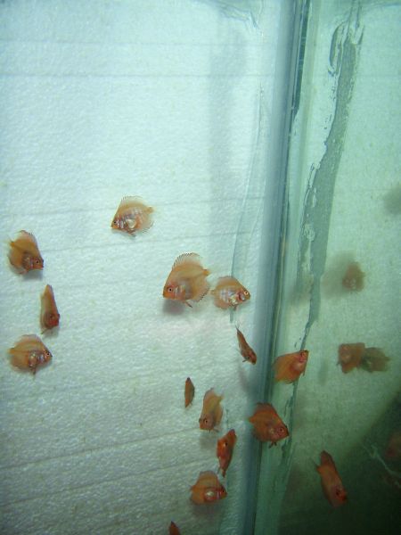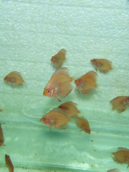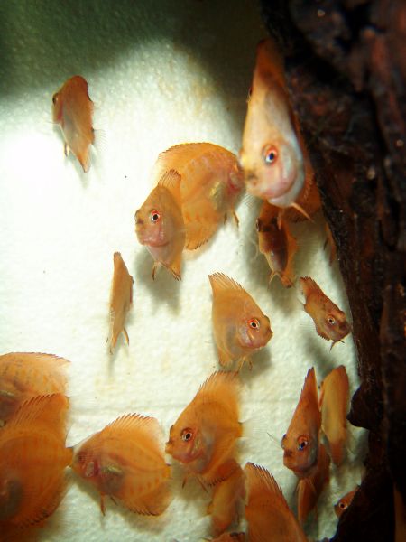 Σήμερα λοιπόν έχουν περάσει 20 μέρες που είναι τα μικρά (περίπου 50) με τους ανάδοχους γονείς και όλα βαίνουν καλώς. Έχω αρχίσει και τους προσφέρω και διάφορα άλλα συμπληρώματα (κατεψυγμένα Cyclops, κατεψυγμένη και ζωντανή daphnia, microworms και τριμμένες τροφές των ενηλίκων δίσκων)