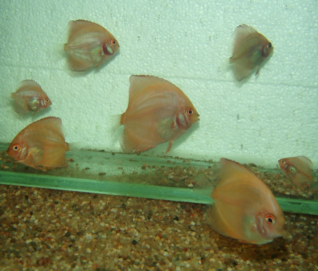 Οι πρώτες φωτογραφίες είναι από μία ομάδα έξι ψαριών που έβαλα στο ενυδρείο όπου υπήρχαν αρχικά τα ζευγάρια των δίσκων πριν αρχίσουν την αναπαραγωγή. Τα μεγάλα είναι τώρα μονίμως στις γεννήστρες. Η ανάπτυξή τους δεν συγκρίνετε με αυτήν των υπολοίπων ψαριών που είναι ακόμα σε άλλο ενυδρείο συνδεδεμένο στη σειρά με τις γεννήστρες όπου γίνετε συνεχείς αλλαγή νερού. Οι υπόλοιπες φωτογραφίες καταγράφουν την διαφορά αυτή. Ενώ στα 6 ψαράκια η ανάπτυξη προχωράει με αργότερους ρυθμούς και έχουν και αρκετά μαύρα στίγματα (στις φώτογραφίες φαίνονται και μερικά από spot algea μην μπερδευτείτε, δεν είναι και τόσο πολλά) τα υπόλοιπα ψαράκια έχουν μεγαλώσει περισσότερο και είναι καθαρά χωρίς σχεδόν καθόλου στίγματα.