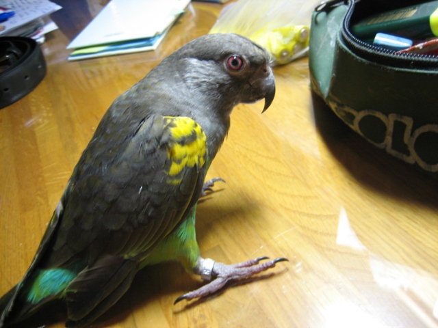 Ειναι το γένος Poicephalus είδος meyeri Το ονομά του ειναι Μaya(μαλλον ειναι θηλυκο) Δεν έχει κλεισει ουτε χρονο και τον εχω εκπαιδευσει να ανεβαινει στο χερι μου στον ώμο μου και φυσικα να τρωει φρουτα απο το χερι μου.! Και εγώ σκεφτομουνα και το pionus αλλά δεν ειχα βρει την περίοδο εκεινη!