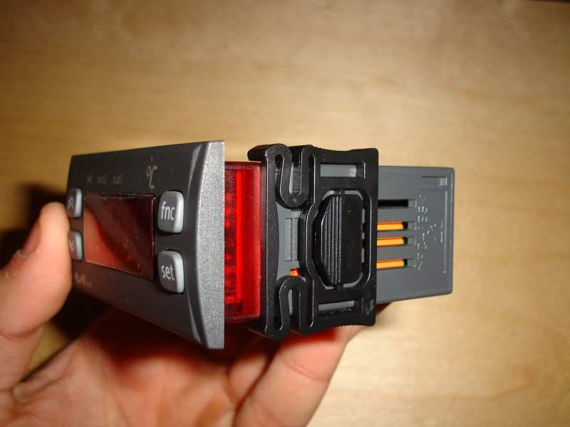 στην πρωτη φωτογραφια φαινεται η πλαινη οψη του ελεγκτη με τους μηχανισμους που κρατανε την συσκευη στην προσοψη του κουτιου, μπαινουν ετσι οπως φαινονται στην φωτογραφια