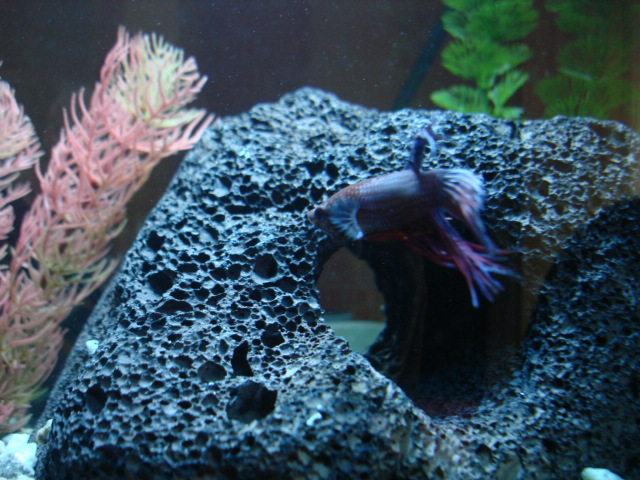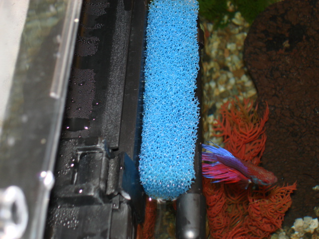 Να δώσω και εγώ με την σειρά μου και την ελάχιστη εμπειρία μου μία ιδέα για την εξαφάνιση της έντονης ροής του φίλτρου και της ανατάραξης της επιφάνειας του νερού. Στρέφω το διάτρητο σωληνάκι του φίλτρου μου (που είναι ταπωμένο στην άκρη του) προς το τζάμι (πλάτη του ενυδρείου) ώστε τζάμι και σωληνάκι (η πλευρά που έχει τις τρύπες) να είναι παράλληλα, στο κενό που δημιουργείτε ανάμεσά τους εφαρμόζω ένα κομμάτι από σφουγγάρι φίλτρου σε μήκος τόσο όσο το μήκος από το σωληνάκι. Το σφουγγάρι ή μπορούμε να το δέσουμε στο σωληνάκι ή απλά να το στριμώξουμε ανάμεσα σε σωληνάκι και τζαμί. Στην συνέχεια έχοντας ως όριο την επιφάνεια του νερού τραβάμε από πάνω το σφουγγάρι ώστε να το καλύπτει το σωληνάκι και να μην φαίνεται άσχημα μέσα στο ενυδρείο δηλαδή με λίγα λόγια θα φαίνεται μόνο όταν σηκώνουμε το καπάκι. Με αυτόν τον τρόπο κατάφερα να έχω μηδενική ανατάραξη του νερού ενώ έχω κανονικό φιλτράρισμα. Μερικές Φώτο από την πατέντα και από τον Μονομάχο μου.