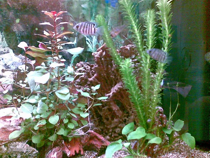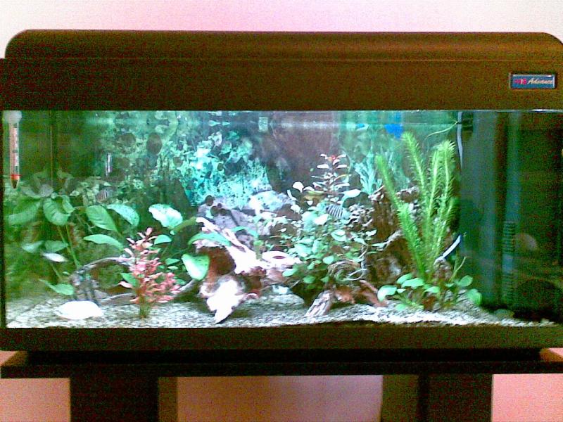 Καλησπέρα σε όλους.Μετά από κάποιες διορθώσεις από κάποιους πολύ πιο έμπειρους από εμένα αυτή είναι η τελική(ελπίζω) εικόνα του ενυδρείου μου.Πριν ειχα μια ακρόπολη και κάτι αλλες βλακείες και 2 σκαλάρια τα οποία δεν έκαναν για το 96άρι ενυδρείο του carefour.Tώρα πήρα 4 μικρά γκουράμι μαζί με τον γλύφτη που εμεινε από παλιά.Οι 2 ραμιρέζοι θα φύγουν αύριο.Πρόσθεσα πριν αρκετό καιρό και μερικά ακόμα φυτά και όλα είναι αρμονικά πλέον στο ενυδρείο.Θέλω να με ενημερώσετε αν η ιχθυοφόρτιση είναι εντάξει.Το ενυδρείο ''τρέχει'' 1 χρόνο χωρίς απώλειες.Ακολουθούν οι φωτό.