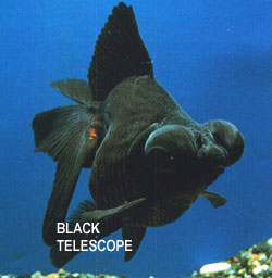 σχεδον μαυρο χρωμα.....ειναι ποικιλια χρυσοψαρου το black moor αν δε κανω λαθος και ειναι κρυου νερου...