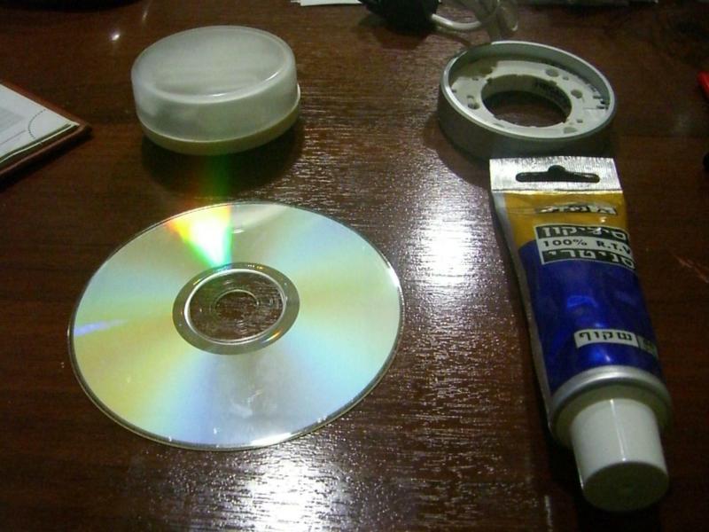 Τα cd τα έβαλα για να έχω μια επίπεδη επιφάνεια ώστε να μπορεί να κολήσει καλά το φωτιστικό επειδή το καπάκι είναι κυρτό αλλά και να μην έχω πρόβλημα με την υγρασία.
