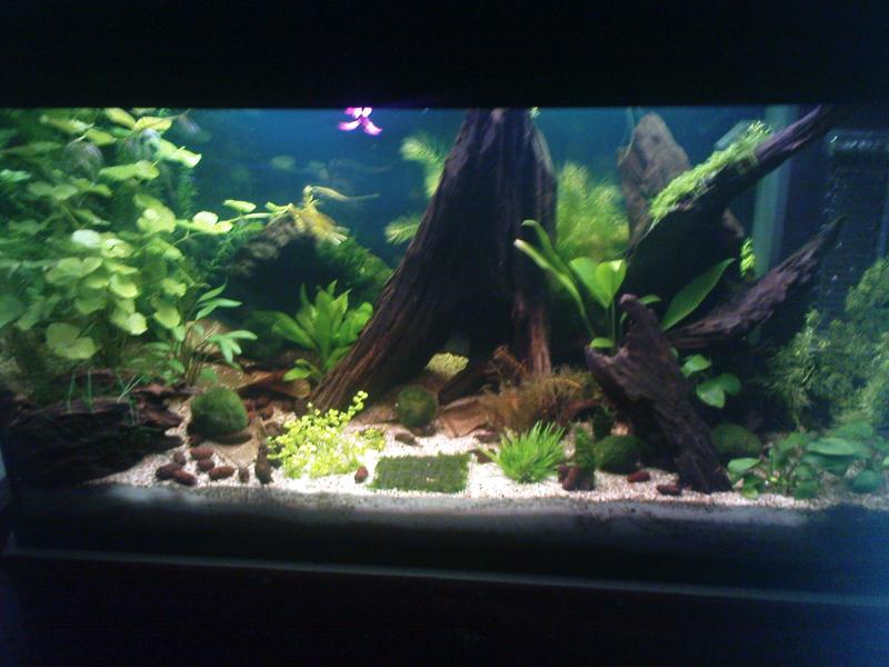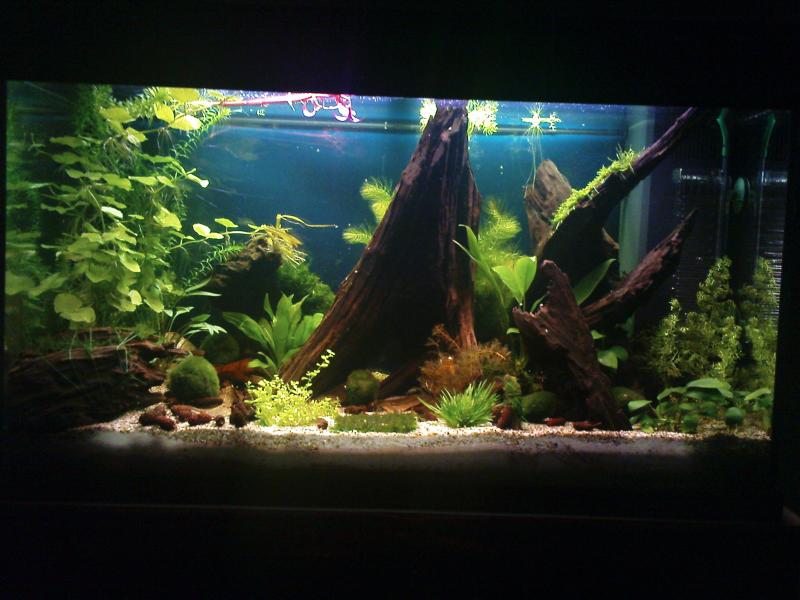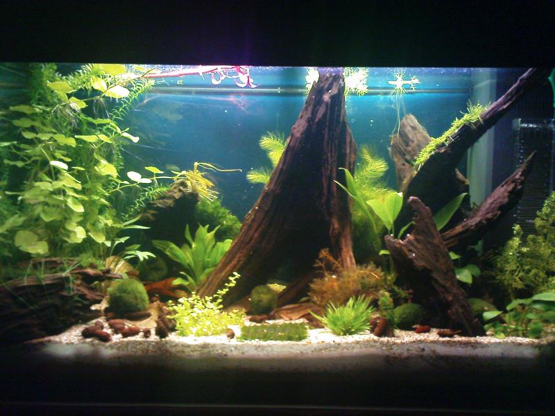 Αν θες να βάλεις ψάρια σου προτείνω να βάλεις πολυ τζαβα φερν και ολων των ειδών τις τζάβα και να τις πλέξεις με πετονιά στα ξύλα σου... Τα ξύλα θα τα βάλεις στις άκρες ωστε θα δημιουργηθεί κάτι σαν βουναλάκι γεμάτο φυτά αλλα και κρυψώνες... Αυτά στις δυο πλευρές(δεξια αριστερά)και στην μέση βάλε για να μην μείνει κενό σου προτείνω ενα είδος μος για χαλί... Ετσι οι γαρίδες σου θα έχουν πολλές κρυψώνες ασε που το ενυδρειο σου θα είναι πιο ωραίο... Απο ψάρια αν ακολουθήσεις την συμβουλή μου βάλε κανενα είδος microrasbora και τέτοια μικρά είδη Ασίας.Ισως ενα κοπαδάκι 10-15 ατόμων δώσει κίνηση στο ενυδρείο σου... Παιξε βιοτοπικά φίλε...δεν θα χάσεις...