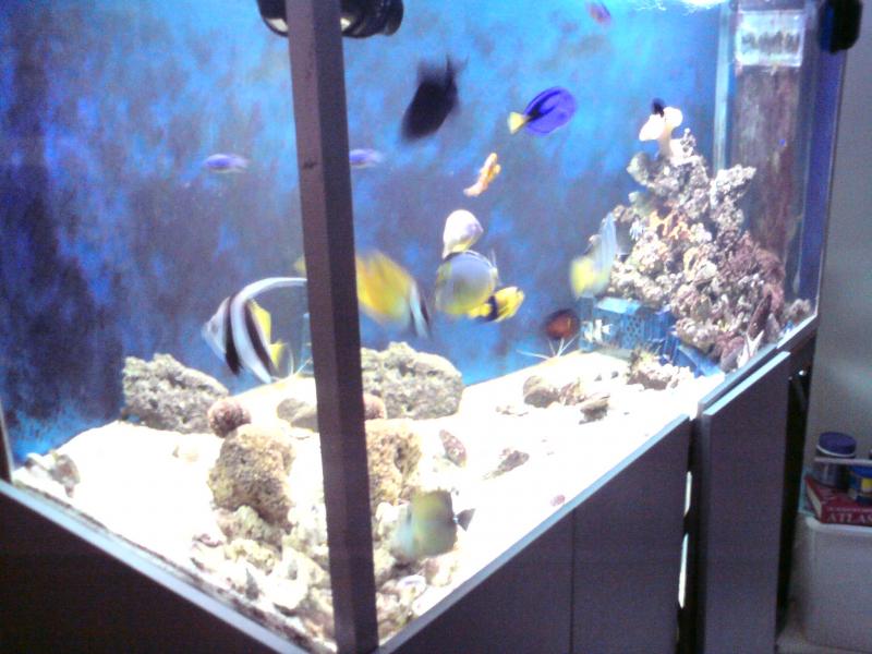 ηρθε η ωρα να παρουσιασωτο ενυδρειο μου. μενω Περαμα και εχω ενα Fish Only προς το παρων. Διαστασεις 1500μ χ 760υ χ 700β. Συν το sump περι τα 200 litre. Hμιτελες, με αρκετες ελλειψεις, στο φωτισμο, στο υποστρωμα, και στο ζωντανο βραχο.Ζουνε μεσα περι τα 21 ψαρια διαφορων μεγεθων, και διαφορα αλλα ειδη που θα προσπαθεισω να περιγραψω σωστα. Common Name / Scientific Name 1) 2 False Clownfish, Ocellaris Clownfish / Amphiprion ocellaris 2) 1 BiColor Angelfish, Blue and Gold Angel,Oriole Ang / Centropyge bicolor 3) 1 Coral Beauty, Dusky Angelfish / Centropyge bispinosus 4) 1 Blue Damsel, Blue Devil / Pomacentrus caeruleus 5) 1 Yellow Tailed Damsel / Chrysiptera parasema 6) 1 Regal Tang, Blue Tang / Paracanthurus Hepatus 7) 1 Niger Triggerfish / Odonus Niger 9) 2 Cleaner Wrasse / Labroides dimidiatus 10) 1 Desjardini Tang / Zebrasoma desjardinii 11) 1 Black Tang, Twotone tang / Zebrasoma scopas 12) 1 Naso Tang / Naso lituratus 13) 1 Fox Face - Rabbitfish / Siganus Vulpinus 14) 1 Γυλος Ελληνικος 15) 1 Red Sea Bannerfish / Heniochus intermedius 16) 1 Eibli Angelfish / Centropyge eibli 17) 2 Javanese Damsel / Neoglyphidodon oxydon 19) 1 Half Blue Damsel / Chrysiptera hemicyanea 20) 2 3 Stripe Damsel / Dascyllus aruanus 21) 1 Cleaner Shrimp / Lysmata amboinensis 22) 2 Fire Shrimp / Lysmata debelius 23) 1 Munida sarsi 24) 5 Cerith Snail / Cerith Snail 25) 4 Turbo/Astrea Snail / Astrea tecta 26) 1 Orange Tree Sponge / Ptilocaulis sp (?) ![]() 27) 1 Chocolate Chip Starfish / Protoreastor nodosus 29) 1 Rainbow Urchin / αχινος 39) 10 Hermits Crab brown legs 40) 1 καβουρας αλγης Χαλκιδαιος 41) 1 σαρκοφυτο 42) λιγοι ζωοανθοι 43) αλγες Chaeto και Graciliaria Macroalgae ουφ αυτα λοιπον κυριες και κυριοι. θα βαλω και μερικες φωτο.