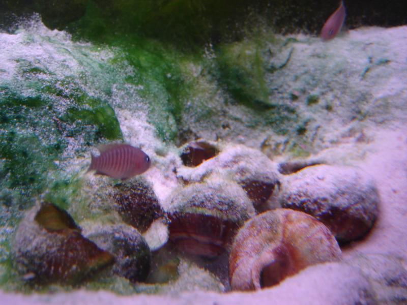 Την ίδια χαρά πήρα και εγώ χθές, όταν είδα κάτι "μάτια" να κουνιούνται... Μετά πρόσεξα ότι τα μάτια είχαν πίσω και ουρά... Ναι ήταν τρία μωρά multi κάτω από ένα μεγάλο κοχύλι και από πάνω να περιφέρονται και να τα προσέχουν οι γονείς τους. Αγχώθηκα και εγώ για το αν τρώνε γιατί δεν προλαβαίνουν τίποτα από τα μεγαλύτερα, αλλά υποθέτω ότι δεν μπόρει κάτι θα βρίσκουν. Επίσης πρόσεξα ότι μόλις κάνουν κάποια κίνηση να απομακρυνθούν τα μικρά η μάνα τους τα "τρέχει" για να ξανακρυφτούν κάτω από το κοχύλι. Να και μία πρώτη φώτο που τράβηξα (sorry αλλά με την μηχανή που έχω, είναι τόσο μικρά που δεν μπορούσα να τα βγάλω καλύτερα). |
