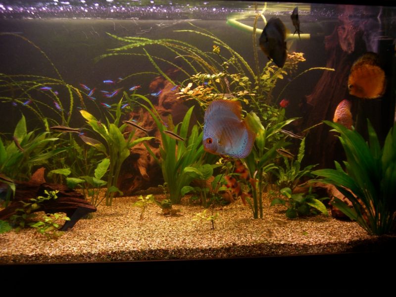 και ειπαμε οσο πιο λιτο ειναι τοσο πιο ευτυχισμενοι οι δισκοι ..και τοσο πιο πολυ ευχαριστιεσαι τα ψαρια με την επαφη (χαδια ταισμα απο χερι κτλ κτλ ) πολυ προσφατα πηρα απο χομπυστα 2 ψαρακια απιστευτα τρομαγμενα και το ενα με δυσπλασιες και παραμορφομενα πτερυγια ... τα ψαρακια τα λυπηθηκε η ψυχη μου οταν το αντιληφτηκα στο χωρο μου .... και ομως σε ενυδρειο χωρις τιποτα αλλο μεσα παρα μονο δυο αλλους δισκους "προβατακια" τωρα τρωνε ολα απο το χερι μου και χαιδευω τα κεφαλια τους οποτε πλησιασω λιτο και αδειο ενυδρειο