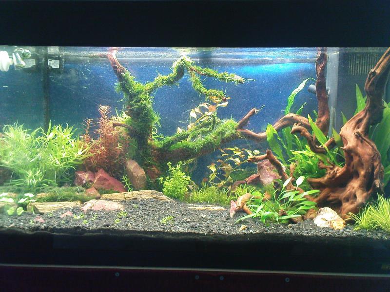αστο οπως ειναι να φουντωσει και μετα θα δεις πιο ευκολα που πρεπει να αφαιρεσεις και που να προσθεσεις φυτα ολη η ουσια ειναι η διαδρομη μεχρη να φτασειες στο ζητουμενο ετσι μαθαινεις και τις απαιτησεις απο αυτο που εφτιαξες. ενα ψιλοκουρεματακι τη μοςς να αρχισει να παιρνει μορφη οι πετρες σου αν και διαφορετικες μου αρεσαν μην κανεις καμια διορθωση σαυτες μεχρη να μεγαλωσουν τα φυτα και ναδεις ποιες θα ειναι εμφανη και ποιες θα μισοκρυφτουν ημεσαια ριζα ειναι ολα τα λεφτα θα την ηθελα ενα κλικ αριστερα οχι πολυ τοσο οσο να δειξουν και η αλλες 2 τη μπροστα δεξια μου φαινεται οτι την αδικης με το στησιμο της λιγη μοςς στο χοντρο κλωναρι στη μεση θα την εκανε πιο ζωντανη εχει προδιαγραφες για πολυ ομορφο ενυδρειο