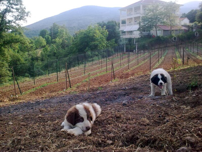 Δυό πανέμορφα ποιμενικά καυκάσου που έρχονται να να προστεθούν στα άλλα 2 που έχω (Την θηλυκιά 10 χρονών και τον αρσενικό 8,5 χρονών). Είναι μόλις 2 μηνών και ζυγίζουν απο 5 κιλά το καθένα για να μήν αναφέρω το τί τρώνε. Ο αρσενικός (Άλεξ) ασπρος και καφέ με πανέμορφα γκρίζα μάτια και η θηλυκιά (Γκλόρια) ασπρη και μαύρη. Τα ονόματα φυσικά διαλεγμένα απο τα παιδιά μου και εμπνεσμένα, για όσους έχουν μικρά θα το κατάλαβαν, απο την ταινία κινουμένων σχεδίων ΜΔΑΓΑΣΚΑΡΗ. Ζούν ελεύθερα σε μιά έκταση περίπου 5 στρεμμάτων και ελπίζω να μήν μου χαλάσουν το αμπέλι. Πολύ παιχνιδιάρικα και ειδικά με τα παιδιά μου. Τα μεγάλα μετά απο μιά περίοδο προσαρμογής μιάς εβδομάδας και αφού καθορίστηκαν οι ρόλοι μέασα στην σκυλοοικογένεια φαίνεται οτι τα έχουν δεχτεί καλά. Τί να πώ ο χρόνος θα δείξει. |