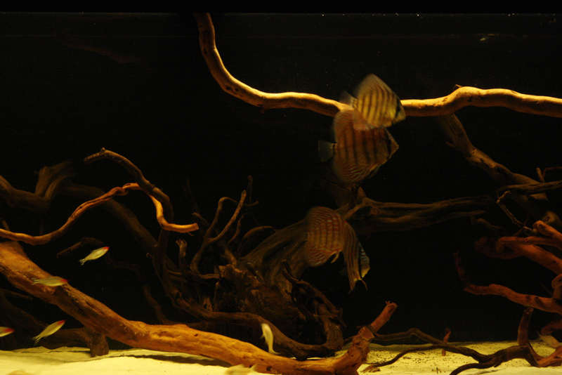 Δίσκους δεν σκέφτομαι να βγάλω γιατί μετά με 4 ψάρια δεν θα θεωρείται κοπάδι, πράγμα που θεωρείται σχεδόν απαραίτητο για δίσκους. Τα λίτρα που μου λείπουν τα αντικαθιστώ με συχνές αλλαγές νερού και αργότερα υπάρχει βλέψη για μεγαλύτερο ενυδρείο.