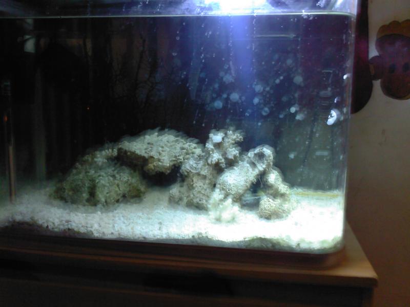 Όπως σου είπανε κ οι υπόλοιποι, βάλε βράχο και μετά κάνε οτιδήποτε άλλο. Πρέπει να έχεις γύρω στο 10% του όγκου του νερού σου. Δλδ στα 100 σου λίτρα θέλεις 10 κιλά. Πέρα απτον αραγωνίτη....