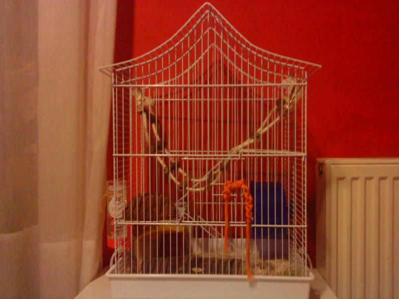 μικρο κλουβι.ασε που ειναι αγριο ζωο και δυσκολα εξημερωνεται.στο χωριο μου τα βλεπα να χωροπηδανε στα δεντρα.ειναι τρομερο να μπει σε κλουβι..δειξε γεναιος και αστο ελευθερο....εγω αυτο θα κανα...