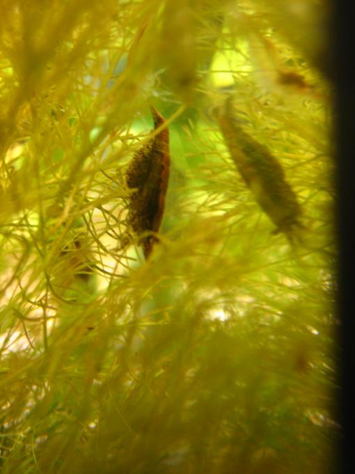 Λοιπόν πέντε λεπτά αφότου την άφησα ελεύθερη στο ενυδρείο μου τη βρήκα μάλλον να "συνουσιάζεται" με τη καφέ πάνω σε φύλλο ανούμπιας..... Αυτό θα πει σωστή προσαρμογή..... Προσπάθησα να βγάλω φωτογραφία το στιγμιότυπο αλλά ήταν αδύνατη η εστίαση λόγω της πυκνής βλάστησης. Μια ήταν από κάτω μετά στο πλάι και στο τέλος από πάνω. Όλο το κάμα σούτρα σε 5 λεπτά.... Ο μάγκας θα έχει χαρέμι. Ερώτηση: πόσο κρατά η κυοφορία στις γαρίδες; |