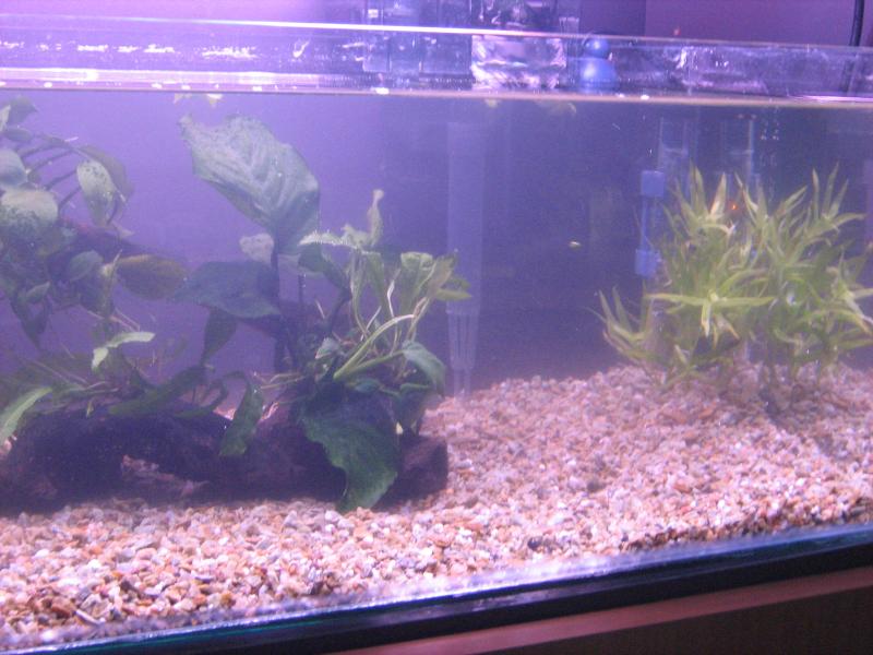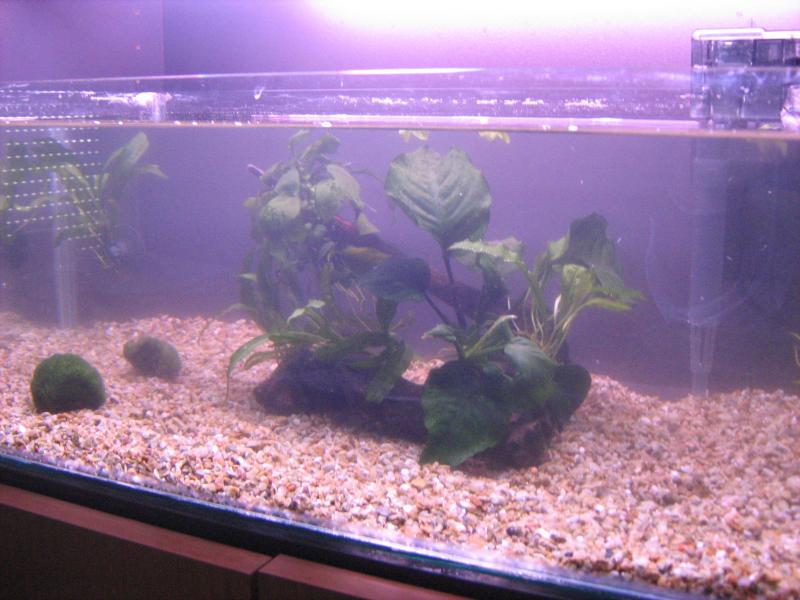 Πληροφορίες Διαστάσεις:60 x 30 x 25 Όγκος:45 λίτρα Κατηγορία:φυτεμένο Φυτά:anubias barteri, anubias nana, anubias nana petite, cladophora aegagrophila, microsorum pteropus, heteranthera zossterifolia Ψάρια / ¶λλα είδη: Διακοσμητικά υλικά:χαλίκι χαλαζιακό (όχι ότι έχει σημασία), μια ρίζα μοπάνι. λεπτομέρειες που δε φαίνονται καθαρά στις φωτογραφίες, στην αριστερή γωνία υπάρχει μια ρίζα microsorum δεμένη πάνω σε μια βεντούζα στα 10 εκατοστά από τον βυθό. αντίστοιχα στην μπροστά αριστερή γωνία η anubia nana petite Φόντο: όχι Φωτισμός:2 x 18 Watt T8 Διάρκεια φωτισμού:5 ώρες Φιλτράρισμα:hang on aquaclear 20, μόνο βιόμπαλες Θερμοστάτης:20 watt Λίπανση:όχι Παροχή CO2:όχι Παράμετροι: pH:6,8 Γενική σκληρότητα (GH):8 Ανθρακική σκληρότητα (ΚΗ):3 Αμμωνία (ΝΗ3): Νιτρώδη (ΝΟ2): Νιτρικά (ΝΟ3): Αλλαγές νερού:30% κάθε βδομάδα Θερμοκρασία:27 βαθμοί ¶λλες πληροφορίες:προορίζεται για μονομαχιέρα, ίσως μπουν και γαρίδες red cherry. προσπάθησα να κρατηθώ στις αρχές του ryobuku...τα σχόλια δικά σας Φωτογραφία: Τελευταία επεξεργασία από το χρήστη chemical mac : 30-10-09 στις 14:57 |