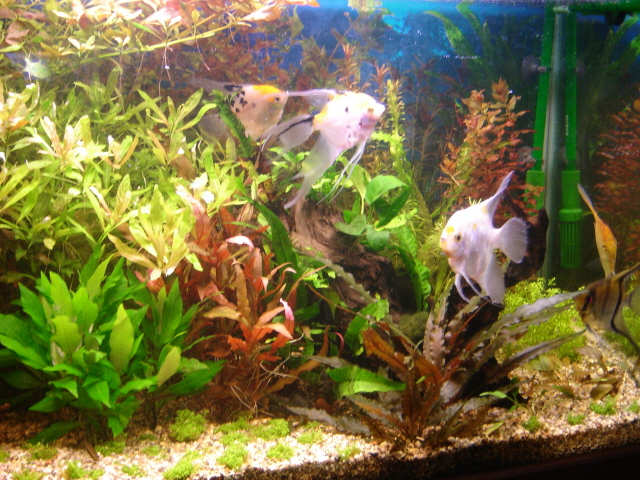 ομως δε μπορω να μη σχολιασω οτι σε τετοιες "ζουγκλες" ψαρια οπως τα σκαλαρια χανουν πολυτιμο χωρο κολυμβησης...ειναι τετοιο το σχημα τους που δε μπορουν να περασουν αναμεσα απο τα φυτα αν ειναι τοσο πυκνα. πανεμορφο στο ματι αλλα φροντιζε να κλαδευεις ετσι ωστε να μη στριμοχνωνται σε λιγα λιτρα τα σκαλαρια σου.