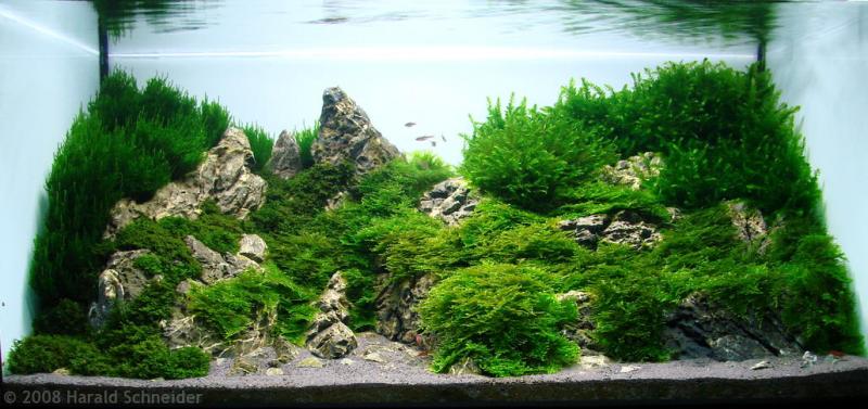 Δείτε και αυτό επίσης 54 λιτρα. Αυτό είναι απομίμηση πεύκου από τζάβα μος!!! Ο,τι και να πείτε τώρα, δίκιο έχετε....το μονοπατι της κοκκινοσκουφιτσας. Ναί συμφωνώ ότι ο βυθός μοιάζει ψεύτικος και παράγολος με πευκάκια βουνοπλαγιές και δασικά μονοπάτια. Ομως τα τελευταία χρόνια μας κατέκλυσαν αυτά τα πρότυπα καλώς ή κακώς!! μέσω των ξένων διαγωνισμών, τόσο που οι αρχάριοι του είδους σχεδόν δεν ξέρουμε πώς έφτιαχναν παλιά τα φυτεμένα ενυδρεία. Για να πω την αμαρτία μου, μ' αρέσει και στο νερό η απεικόνιση των στεριανών τοπίων όπως σε ένα πίνακα ζωγραφικής ή σε μια ωραία φωτογραφία φύσης. Τα ενυδρεία αυτά τα ζηλεύω μερικές φορές και είναι εντυπωσιακά και πρόκληση και για πολλούς άλλους ακουασκέιπερς ακόμη και άν δεν διαγωνίζονται. Η τάση αυτή πιθανά να αλλάξει κάποτε πάλι... |