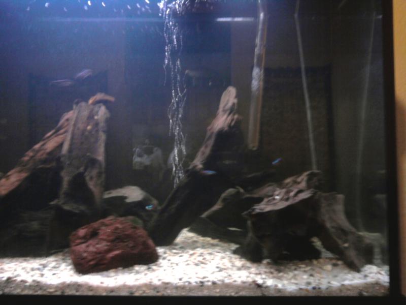 Το ενυδρείο σου νομίζω θα δείξει υπέροχο άμα βάλεις καμμια ανούμπια όπως είπαν και τα παιδιά, μ αρέσουν πολύ τα ξύλα που έχεις! Τα ψαράκια σου γιατί μου κάνουν για cardinal κι όχι neon;;; Με παραπλανεί η φωτογραφία που είναι ψιλοθολή;