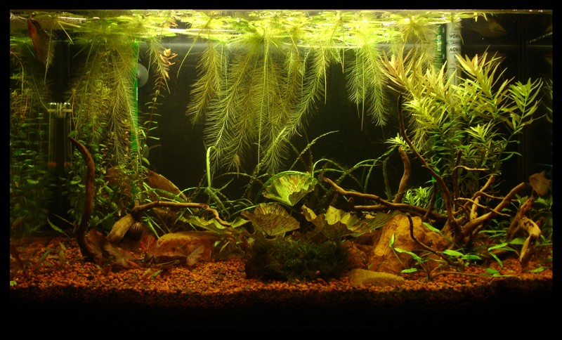 Φυτά: Red Tiger Lotus, Java Moss, cryptocoryne (Wenditii brown/green, balansae, crispatula, wiilisii), Rotalla rotundifilia indica, Limnophila aromatica, Pistia stratiotes.
