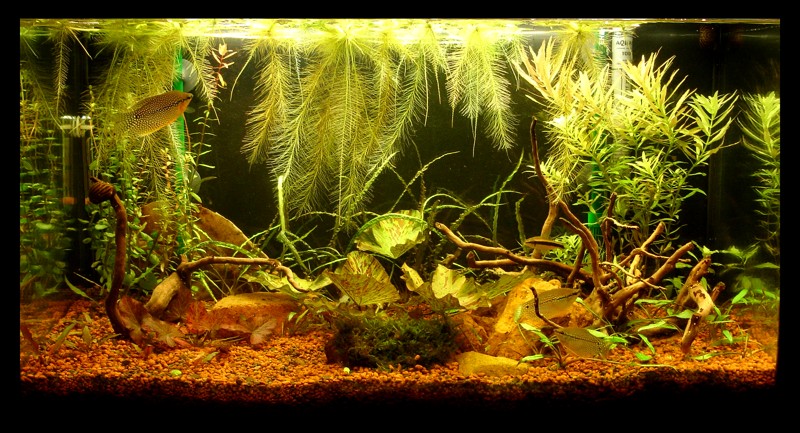 Δες κι εδω πως ειναι ενα αυστηρα βιοτοπικο με gouramis. O τυπος χρησιμοποιησε υλικα απο την περιοχη του και αναπαρεστησε ενα βιοτοπικο Μαλαισιας με μπλε γκουραμι.