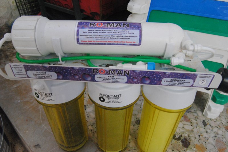 οπως βλεπουμε το οριζοντιο φιλτρο απο πισω εχει ενα βαρελακι που λεει flow οπου περναει το νερο της βρυσης πρωτα απο εκει , οταν περασει το νερο της βρυσης το μανομετρο θα πρεπει να δειχνει 4 μπαρ , πραγμα που τωρα δεν το κανει ενω υπαρχει κανονικα ιεση στο δικτυο . εαν παρακαμψω το βαρελακι και ενωσω τη βρυση απευθειας στο οριζοντιο φιλτρο η οσμωση δουλευει μια χαρα , οποτε το προβλημα εντοπιζεται μεταξυ του flasher , μανομετρου και στο μικρο το βαρελακι , να σημειωσω οτι ακουγεται ενας θορυβος απο το μικρο το βαρελακι κατι σαν να περνει αερα μεσα , εαν βαλω την οσμωση να δουλεψει γεμιζει το οριζοντιο φιλτρο και τα δυο καθετα δεξια αλλα δεν περναει νερο στο αριστερο και στην εξοδο