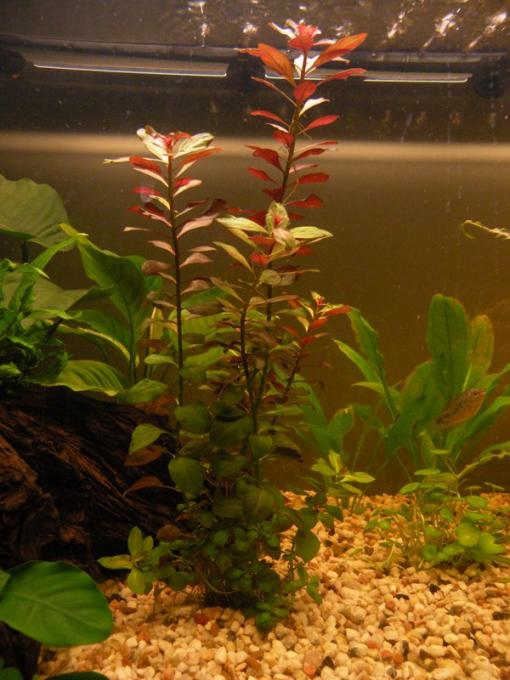 Τις τελευταίες 2 εβδομάδες παρατήτησα ότι η Ludwigia που έχω στο ενυδρείο έχει πάρει τα πάνω της. Όχι μόνο ψήλωνει μέρα με τη μέρα αλλά και τα φύλλα της έχουν πάρει ένα υπέροχο λαμπερό χρώμα. Η χαρά μου δεν περιγράφεται μιας και τα φυτά μου γενικά ήταν σε στάσιμη κατάσταση... και κάποια με όχι και τόσο καλή υγεία. Όμως τις τελευταίες 2-3 ημέρες το πιο ψηλό κλαδί έχει λυγίσει από το βάρος στο πλάι. Θα ήθελα να ρωτήσω: 1. αν πρέπει να το κλαδέψω 2. αν γίνεται να φυτέψω τα κλαδέματα 3. απο που πρέπει να κλαδεύω (το πιο ψηλό κλαδί που δε λίγο θα φτάσει στην επιφάνεια ή από τα χαμηλά Σημ: στο σάιτ tsamis aquarium έχει ένα άρθρο για το φυτό αυτό που λέει για το συγκεκριμένο φυτό, αλλά δεν είμαι απολύτως σίγουρος ότι έχω τη συγκεκριμένη ποικιλία ludwigia... Η φωτογραφία είναι πριν το φυτό αρχίσει να γέρνει... |