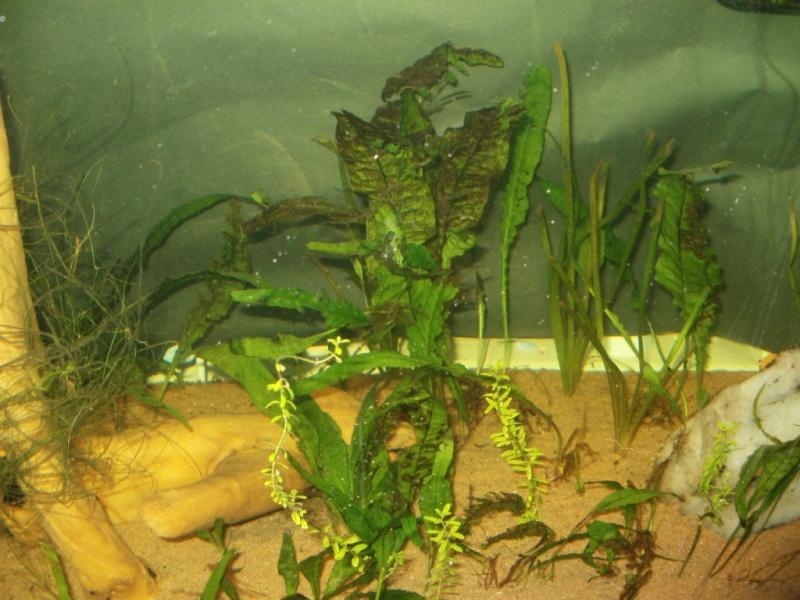 Φυτά (και ερωτηση/εις 2): Λοιπον, εχω σιγουρα Valisneries αλλά απο κει και πέρα όλα παίζονται... Στη δεύτερη φώτο, πίσω και δεξιά απο το ξύλο νομίζω είναι Εχινόδωροι, αλλά δεν έχω ιδέα γι αυτό πίσω και αριστερα (με λυγαριά μου μοιάζει ), η για αυτό ανάμεσά τους που έχει σουλούπι κερατόφυλλου αλλα με κανονικά φυλλαράκια (όχι βελόνες). Επίσης αγνοώ το είδος των φυτών του πρώτου πλάνου (τρίτη φώτο). Στην τέταρτη φώτο τα φυτά με τα πλατιά λογχοειδή φύλλα στη μέση είναι κρυπτοκορίνες? Αυτά είναι και τα μόνα φυτά τα οποία δείχνουν να μην πηγαίνουν καλά... (μάυροι κύκλοι-τρύπες πάνω στα φύλλα τους... τις πταίει?). Στην πέμπτη φώτο, η moss με την οποία έχω τυλίξει το ξύλο και παίζει με τα νευρα μου γιατι έχει την τάη να εξαπλώνεται είναι java moss? Χρειάζεται δέσιμο με πετονιά?