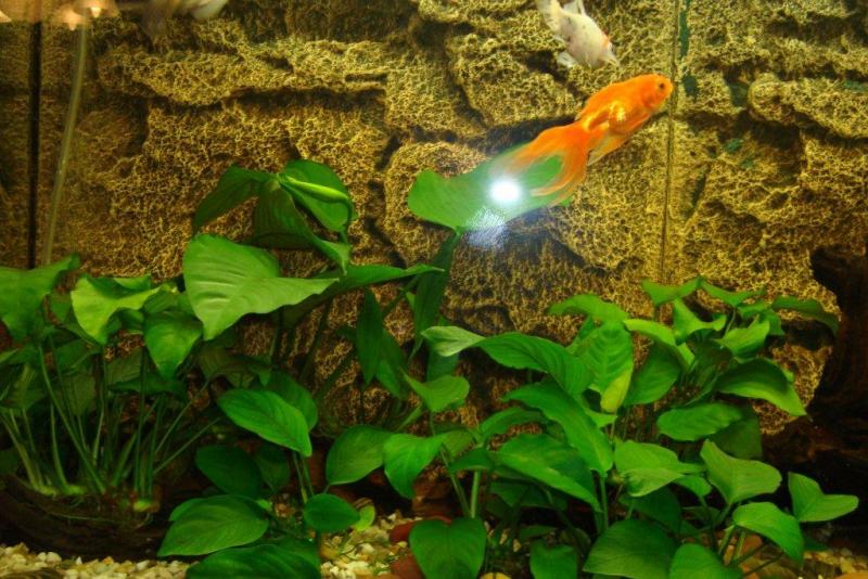 Πρόσεξε το shubunkin, που παρεπιπτόντως είναι λευκό-κίτρινο fantail(Tο shubunkin ειναι κοινο χρυσόψαρο με πιτσιλωτό ποικίλο χρωματισμο ),που από ότι μπορώ να διακρίνω, έχει σήψη στο ουραίο πτερύγιο(ξεφτισμένο).