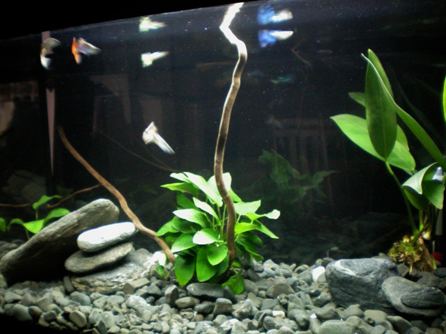 Μπραβο σου για την επιλογη του χαλικιου,γιατι αν βαλεις και γκαπινες αργοτερα θα χεις μεγαλο ποσοστο επιβιωσης των μωρων καθως θα κρυβονται μεσα στα βοτσαλα.Τωρα αν εγω ειχα ενυδρειο που να το βλεπω απο 2 μεριες θα συγκεντρωνα ολα τα φυτα στο κεντρο.Δλδ το πιο ψηλο στο μεση και γυρω γυρω πιο χαμηλα.Κατι σαν "θαμνος" απο διαφορα φυτα