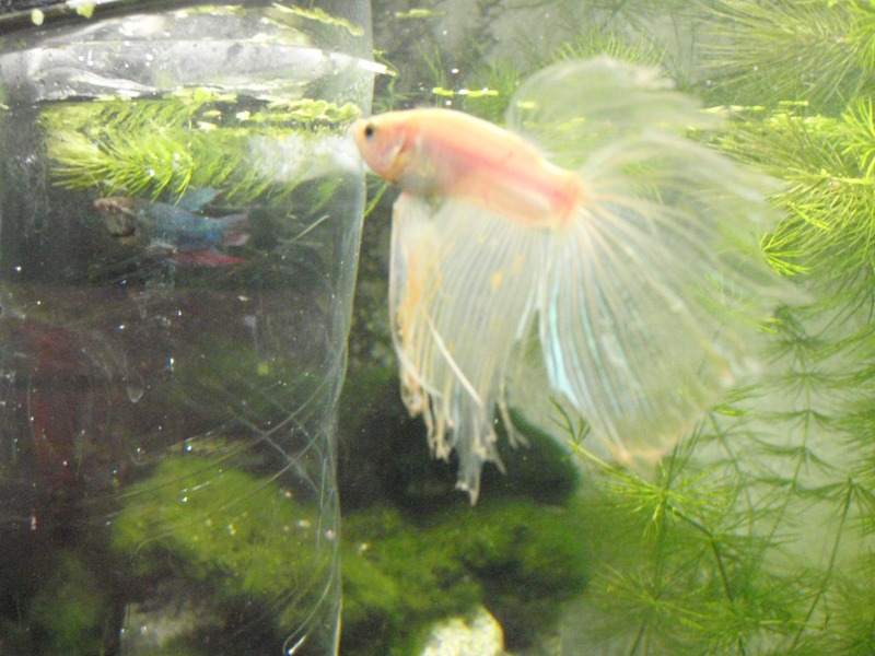 η θυλικια στο μικρο ενυδρειακη εδω και 2-3 μερεσ κανει φωλια..ειπα σημερα λοιπων να δοκιμασω να βαλω τον αρσενικο στο μικρο ...μηπως και γινει τιποτα.....η θυλικια ...που αν δεν φαινοταν να εχει αυγα θα ημουν σίγουρη οτι ειναι αρσενικος!!! εκανε φλερτ..και πηγενε κατω απο την φωλια...ο αρσενικος τιποτα.....καποια στιγμη τον δαγωσε δυνατά στο 5 λεπτο...και τον έβγαλα των εβαλα ξανα στο ενυδρειο του να χαλαρωσει...και μαλον δεν θα ξαναπροσπαθήσω... εβγαλα ομως κάποιες καινούργιες φωτο την θηλύκια....για να δουμε τελικα αν ειναι η οχι....[εκτος απο μια που μια ζει να εχει αυγα...στης άλλες ![]() ![]() μιαζει αρσενικος!!!]
