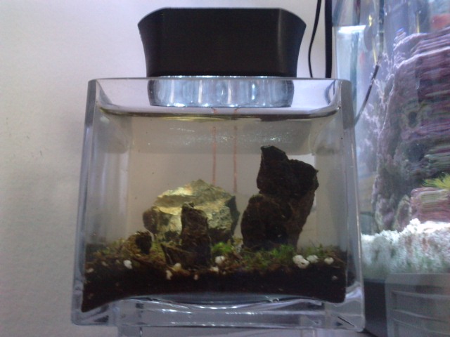Αρχικα αγοραστικε ως κηροπηγιο, αφου ελιωσε το κερι εμεινε ενα απλο βαζο... Πριν μια εβδομαδα περιπου στο μοναστηρακι ηταν ενας μικροπωλητης με ενα παγκο, ολα ενα ευρο.. Εκει βρηκα ενα φακο λεντ με 12 διοδους, πολυ βολικο σχημα και αμεσως τα συνδιασα, μολις εφτασα σπιτι, εσπασα μια πετρα λαβας πηρα το πιστολι καυτης σιλικονης και κολλησα αρχικα τις πετρες, εριξα το υποστρωμα, ακουμπησα τη μος γεμισα νερακι και ετοιμο!! Τα σχολια δικα σας!!!