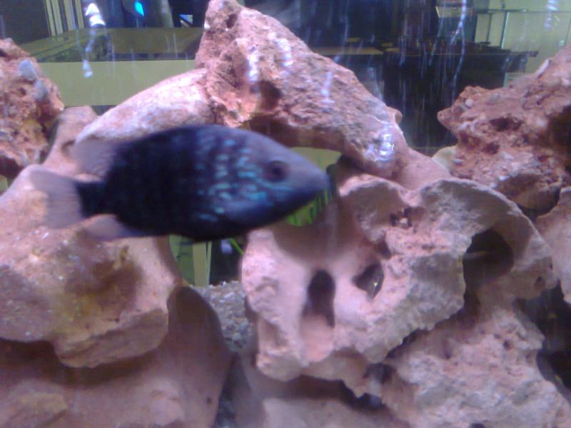 Το τελευταιο μου μοιαζει για Nimbochromis venustus, κιχλιδα απο την ανατολικη αφρικη που δεν εχει καμια δουλεια με τις αμερικανικες σου. |