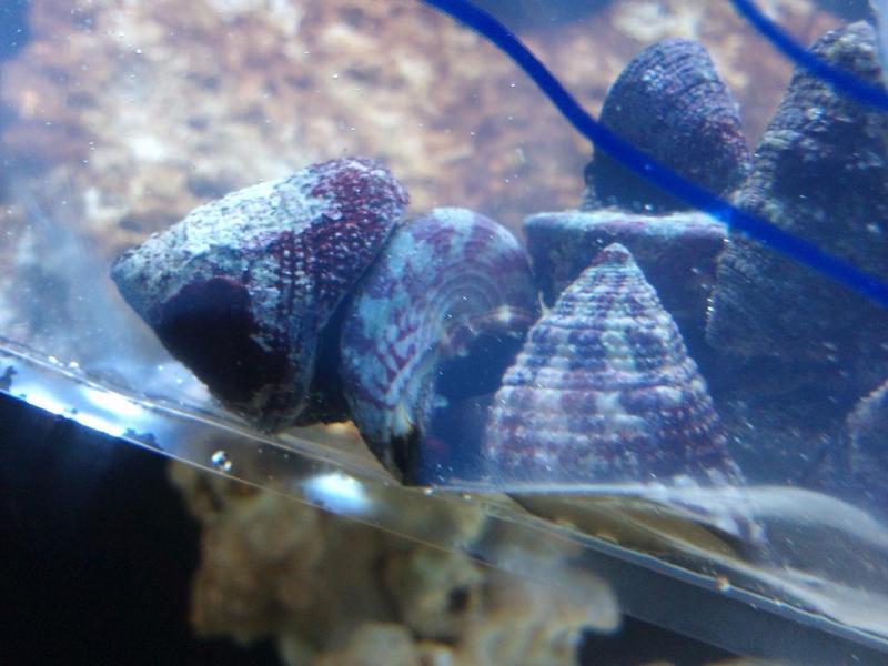 Εγώ ξεκίνησα βάζοντας 7 σαλιγκάρια (trochus νομίζω δείτε την foto) και σε μια εβδομάδα καθάρισαν το 20% της διατομικής και της κυάνο. Μόλις βρώ θα πάρω astrea και turbo . Πιστεύω ότι ένα καλό συνεργείο καθαρισμού πρέπει να μπαίνει το συντομότερο σ'ένα νέο reef .
