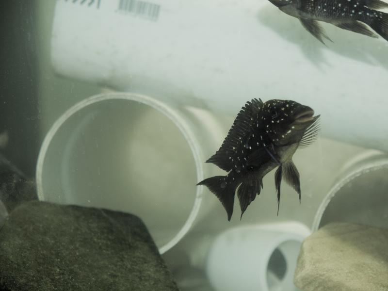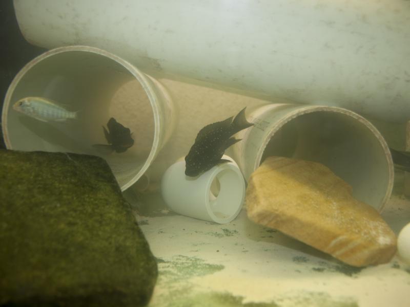Eιναι σε ενυδρειο 120χ60χ60 cm γεματο με PVC σωληνες διαμετρου 10 cm.