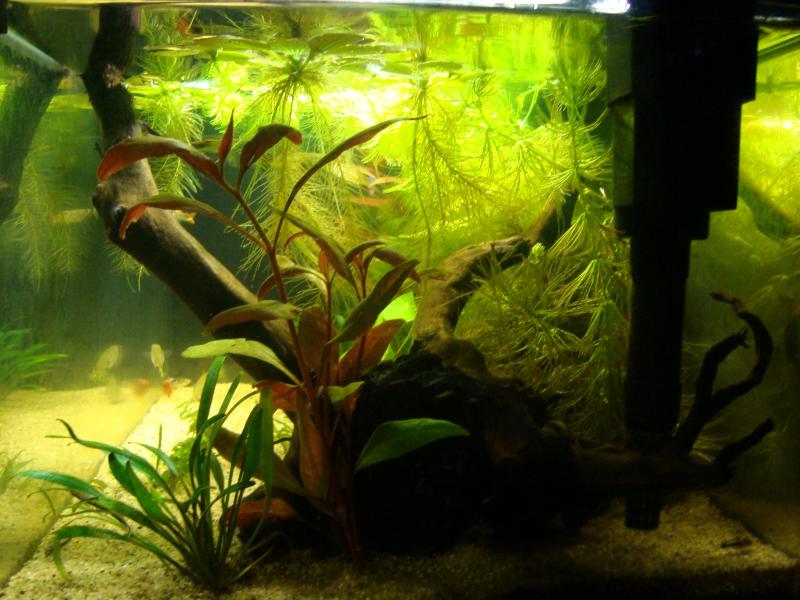 Διαστάσεις:50χ32χ30 Όγκος:48λτ Κατηγορία Φυτά:limnophila aquatica,hydrocotyle vericillat,alternathera reinecki,ceratophylum,camboba κ.α Ψάρια / ¶λλα είδη:1 οtocinclus affinis,2 corydoras habrossus,4 cpd,1 dwarf puffer,6 red cherry,2 japonica και δυο χαρεμακια απο guppys τα οποια θα φυγουν μεσα στην βδομαδα Διακοσμητικά υλικά:Ψιλο χαλικακι μπεζ χρωματος(0.5mm)ξυλα,πετρουλες (χαλίκι, ξύλα κ.λ.π.) Φόντο:Οχι Φωτισμός:1 power compact 18w 4000k Διάρκεια φωτισμού:15:45-01:30 Φιλτράρισμα:εσωτερικο boyu(450lt/h) με βιολογια mini siporax Θερμοστάτης:25w Λίπανση:Μηνιαια με Dennerle E15 FerActive-S7VitaMix-V30 Complete Παροχή CO2:Oχι Παράμετροι: pH:7.2 Γενική σκληρότητα (GH):17 Ανθρακική σκληρότητα (ΚΗ):7 Αμμωνία (ΝΗ3):0 Νιτρώδη (ΝΟ2):0 Νιτρικά (ΝΟ3):20 Αλλαγές νερού:Καθε 15 μερες το 25% Θερμοκρασία:26 ¶λλες πληροφορίες:Το ενυδρειο ειναι καινουργιο(η αλλαγη εγινε πριν απο ενα μηνα απο το 30λτ)αλλα η αμμος , η βιολογια του και μερικα φυτα ειναι εδω και ενα χρονο Φωτογραφία: __________________Περιμενω σχολια και κριτικες για βελτιωση λαθων.Ευχαριστω |